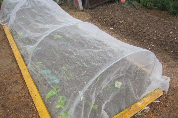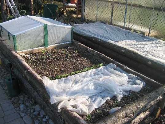 Ende März oder Anfang April kommen Salate und Kohlrabi auf die Beete. Ein Vlies schützt in kalten Nächten. Für Kohlgewächse hat sich ein Gemüsenetz bewährt. Das schafft nicht nur ein günstiges Kleinklima, es hält auch Erdflöhe, Kohlweißlinge und Kohleulen ab und Vögel oder Katzen können auch nicht ans Gemüse.